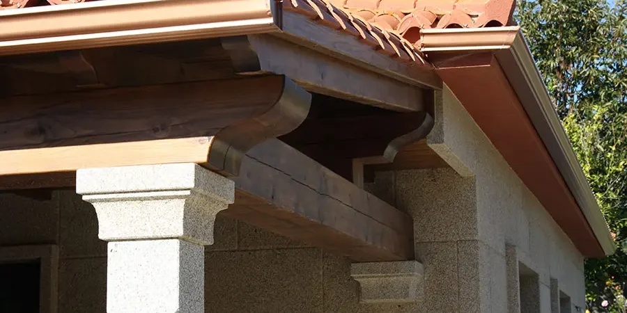 Rehabilitación de casa vieja de piedra, carpintería de aluminio y madera, cubierta con teja roja “escandella”.