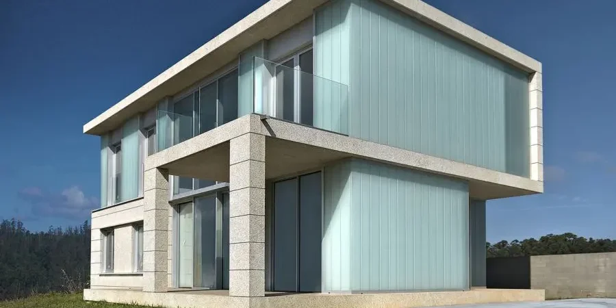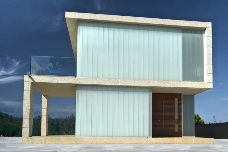 Construida con sillería de 12 cm de espesor, silvestre louro, cerramiento de cristal uglass con cámara y carpintería de aluminio color natural modelo Cortizo.